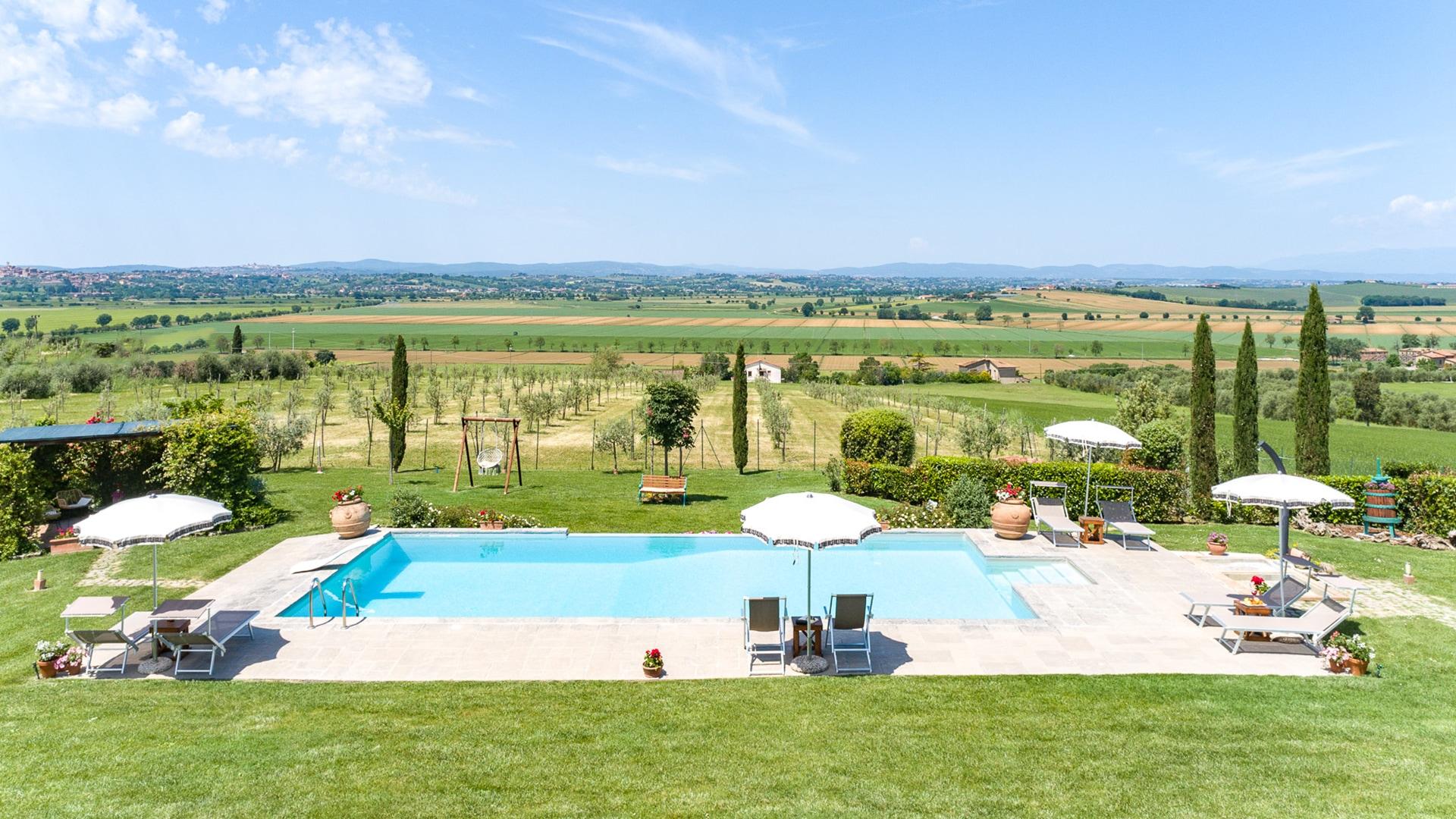 Connected to the estate are groves and hills planted with olive trees. For generations, these trees have been providing the villa with bountiful extra virgin olive oil. The view is simply breathtaking view, both from the terrace and the pool.