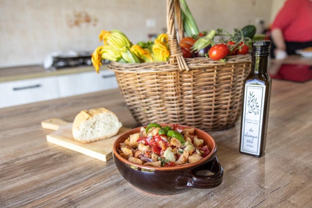 Le lezioni in cucina spaziano dalla preparazione dei crostini toscani, alla pasta fatta in casa, al ragù contadino fino alla preparazione delle carni arrosto. Catia e Sara sveleranno come si insaporisce un pollo al forno, come si ottengono patate succulente e croccanti, come si impastano i tradizionali cantucci da gustare con il vinsanto delle vigne locali.